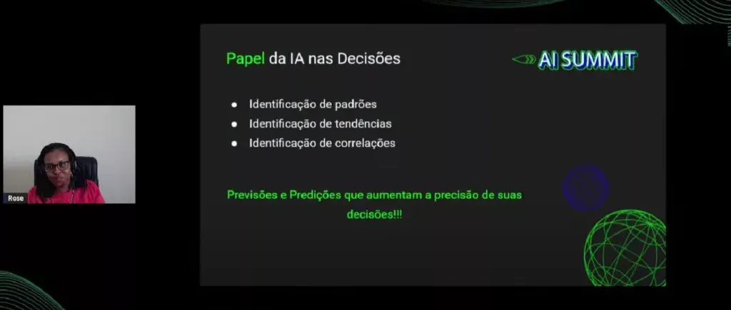 A integração da IA com a gestão, além disso, permite otimizar as operações e obter resultados significativos. A sinergia entre a IA e a gestão transforma a abordagem dos desafios nas organizações, melhorando a eficiência operacional, estimulando a inovação e contribuindo para o sucesso sustentável em um mercado competitivo em constante evolução. Rose explorou o impacto da IA nos negócios e as diversas possibilidades de aplicação dessa tecnologia em diferentes setores e empresas. Também discutiu-se as formas de implementação da IA, destacando, ainda, seu papel na tomada de decisões.