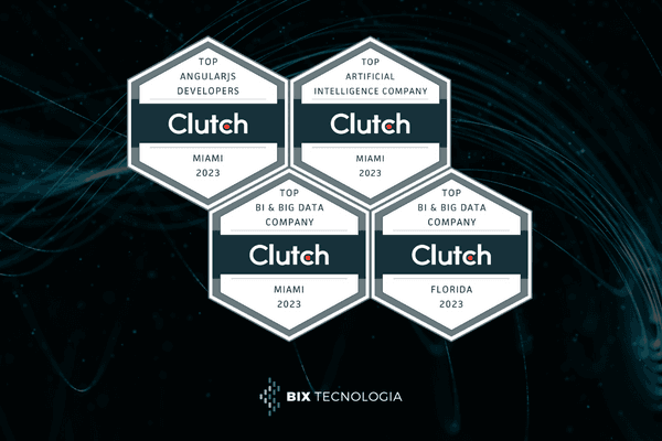 Em 2023, recebemos diversos distintivos que reconheceram a expertise e alta qualidade dos serviços prestados por nós. Ao todo, a BIX Tecnologia recebeu doze selos de destaque Top Company em diversas áreas dentro do Clutch.