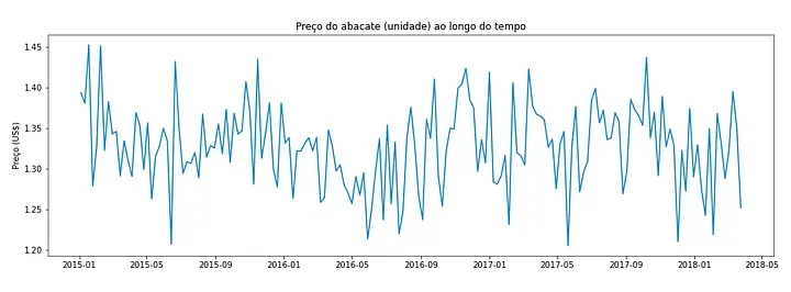 Para resolver essas questões, iremos aplicar uma transformação no nosso conjunto de dados. Ficamos apenas com a média dos preços de abacate por dia, com distância de uma semana entre os dados.